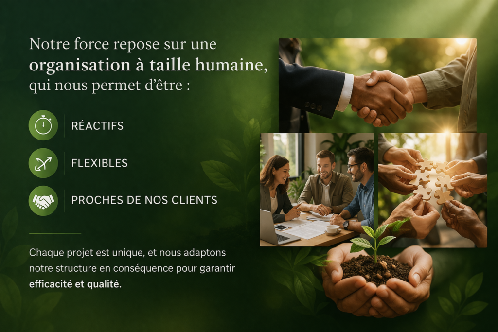 Chaque projet est unique, et nous adaptons notre structure en conséquence pour garantir efficacité et qualité